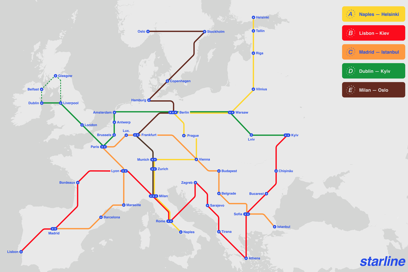 Conectando ciudades como Kiev, Bucarest y Sofía en una red continental, Starline tiene como objetivo poner a Europa del Este en el mapa de alta velocidad.